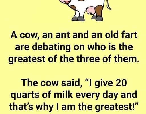 The cow said: “I give 20 quarts of milk every day and that’s why I am the greatest!”