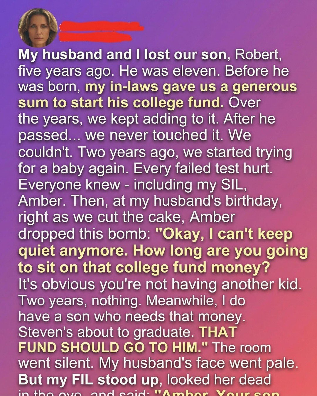 Five years had passed since my husband and I lost our son, Robert, yet time had not softened the quiet spaces he left behind. Before he was even born, his grandparents had lovingly helped us start a small education fund, a gesture filled with hope for a future that felt certain then. Over the years, we added to it whenever we could, not as a financial strategy, but as an expression of love and belief in his dreams. After his passing, the account remained untouched. It was not forgotten; it was simply too meaningful to disturb. It represented memories, intentions, and a future we once imagined with joy.