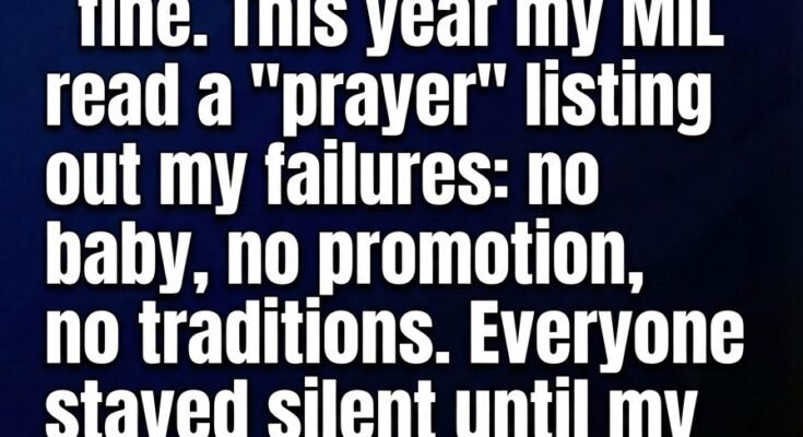Every holiday season, visiting my in-laws came with an unspoken agreement: smile, nod, and keep everything pleasant no matter how tense it felt underneath. Christmas was especially challenging, wrapped in expectations I never seemed to meet. That year, the living room glowed with decorations and polite laughter, but I felt like I was walking on fragile glass. When my mother-in-law suggested we all pause for a “prayer,” I expected something brief and traditional. Instead, her words drifted into uncomfortable territory, touching on hopes for changes in people’s lives—careers advancing, families growing, traditions being “restored.” Each phrase landed heavier than the last, and I could feel the room growing still.
