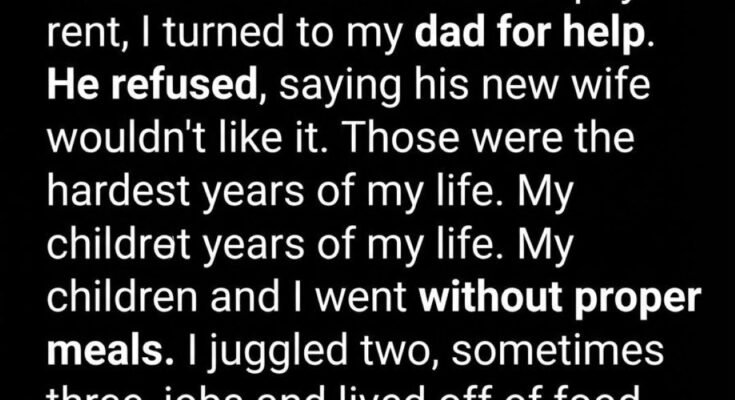 At twenty-three, my life changed in ways I could never have imagined. One moment, I was planning a future filled with shared dreams, and the next, I was facing the responsibility of raising two young children on my own after a sudden loss. Grief arrived quietly but stayed loudly, shaping every decision I made. Bills did not pause for sorrow, and responsibilities did not wait for healing. When the reality of rent, childcare, and daily expenses became overwhelming, I gathered the courage to ask my father for help. His refusal, though calm and brief, left a lasting ache—not just because of the struggle ahead, but because it made me realize how alone I truly was at that moment.